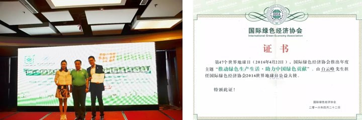 4月22日,在第47個(gè)“世界地球日”到來之際,國際綠色經(jīng)濟(jì)協(xié)會(huì)(IGEA)舉辦了IGEA“保護(hù)地球、綠色行動(dòng)”大型公益盛典。聯(lián)合國前副秘書長、國際綠色經(jīng)濟(jì)協(xié)會(huì)名譽(yù)會(huì)長沙祖康出席會(huì)議并發(fā)表重要講話。國能中電能源集團(tuán)董事長白云峰受邀出席并榮任2016年“世界地球日”綠色公益大使。