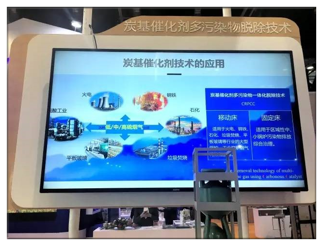 北京國能中電節(jié)能環(huán)保技術(shù)股份有限公司是國能中電集團旗下的控股子公司,主要從事節(jié)能環(huán)保業(yè)務(wù)。國能中電在展會中重點展示了一項新技術(shù):炭基催化劑干法煙氣多種污染物一體化脫除技術(shù)。該技術(shù)是國能中電基于中國科學院的國家863課題超過20年的實驗室研究進行的工業(yè)成果轉(zhuǎn)化,并于今年上半年在濟南鋼鐵獲得工業(yè)級試驗成功。
