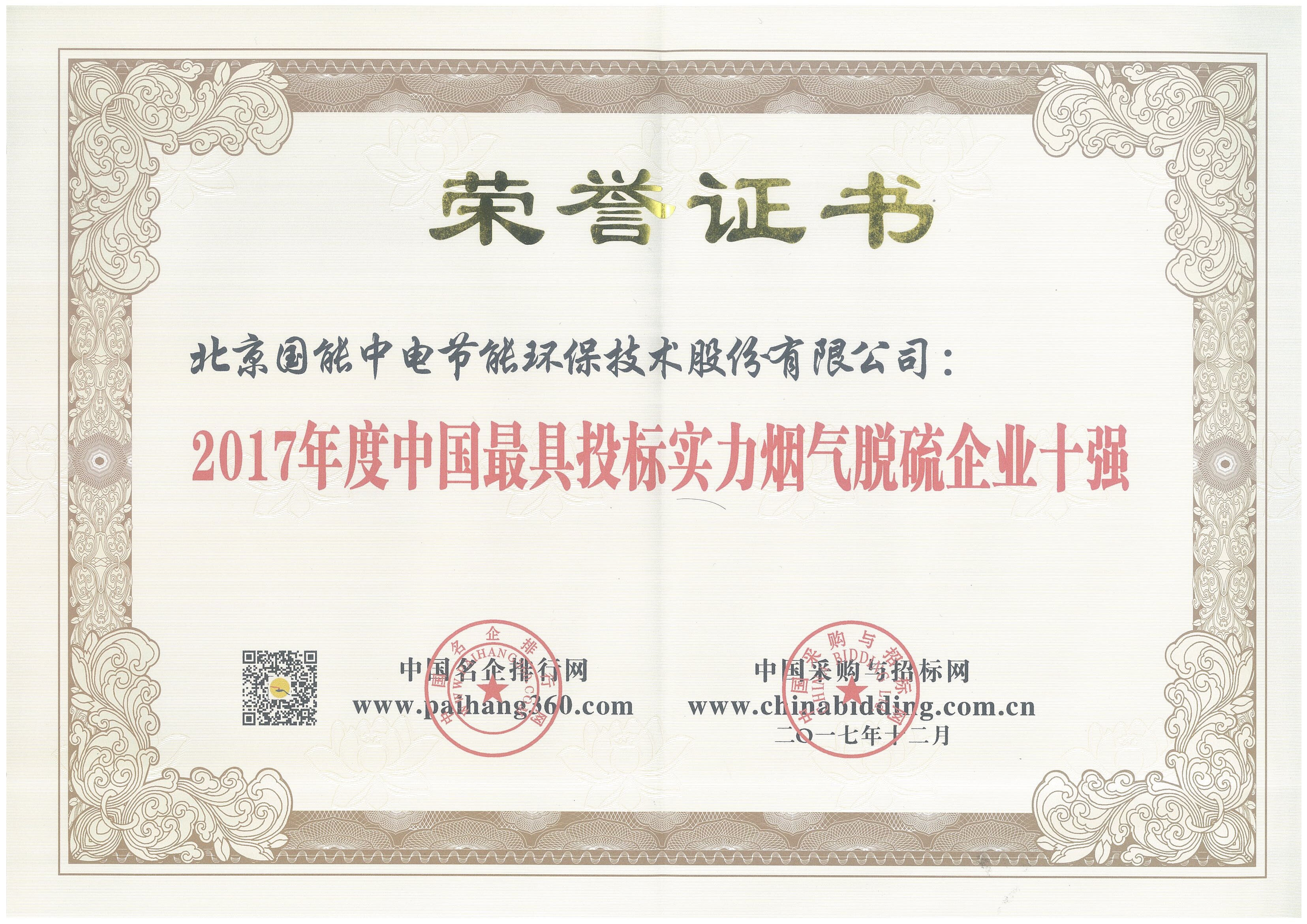 2017年度中國(guó)最具投標(biāo)實(shí)力煙氣脫硫企業(yè)十強(qiáng)