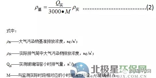 1.5 純氧燃燒玻璃熔窯應監(jiān)測排氣筒中大氣污染物排氣濃度、排氣量及相應時間的玻璃出料量,按式(2)計算基準排放量[3000m3/t(玻璃液)]條件下的基準排放濃度。并以此作為判定排放是否達標的依據。大氣污染物排放濃度、排氣量、產品產量的監(jiān)測、統(tǒng)計周期為1h,可連續(xù)采樣或等時間間隔采樣獲得大氣污染物排放濃度和排放氣量數(shù)據,玻璃出料量數(shù)據以企業(yè)統(tǒng)計報表為依據。