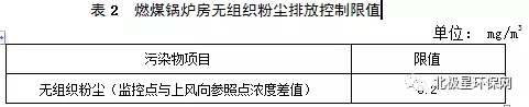 2、燃煤鍋爐配套堆場應采取封閉措施,燃煤鍋爐房無組織粉塵濃度執(zhí)行表2的規(guī)定。