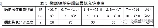 3、每個燃煤鍋爐房只能設一根煙囪,煙囪高度應根據鍋爐房裝機總容量,按表3規(guī)定執(zhí)行,燃油、燃氣鍋爐煙囪不低于8米,鍋爐煙囪的具體高度按批復的環(huán)境影響評價文件確定。新建鍋爐房的煙囪周圍半徑200米距離內有建筑物時,其煙囪還應高出最高建筑物3米以上。